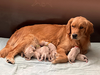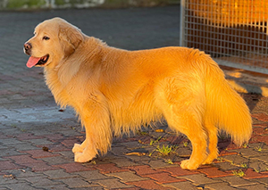 Sie ist eine dunkelgoldene Hündin aus der Amerikanischen Linie.