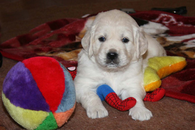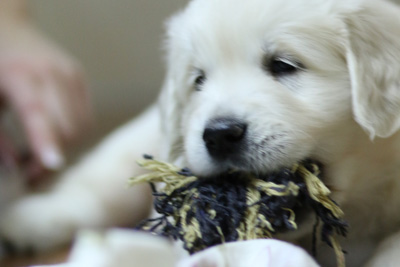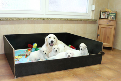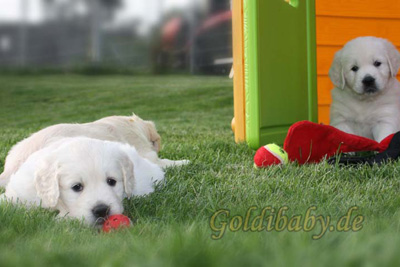 | Spielstunden in Haus und Garten, ermöglichen schon früh das knüpfen zarter Bande zwischen den Welpen und ihren zukünftigen Familien. |