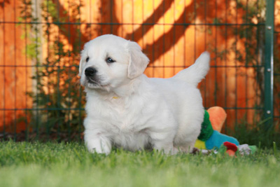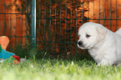 Ab ihrer fünften Lebenswoche (abhängig von Witterung und Jahreszeit) dürfen unsere Welpen das erste mal unseren Garten erkunden. Viele neue Eindrücke in sicherer Umgebung, sorgen dabei für eine gute Wesensentwicklung des Welpen.